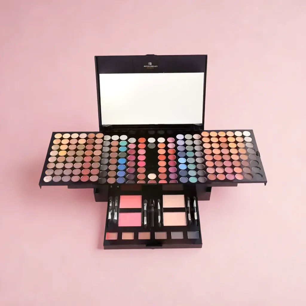 Offrez-vous un coffret de maquillage transportable Aura des belles pour une combinaison ultime de couleurs, une tenue longue durée et une étanchéité garantie pendant 24 heures - le cadeau idéal pour les passionnés de maquillage!