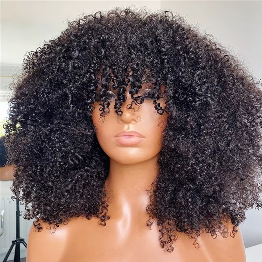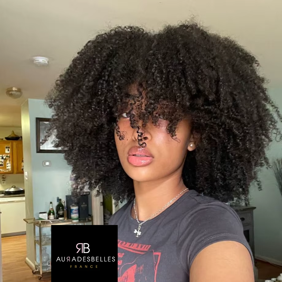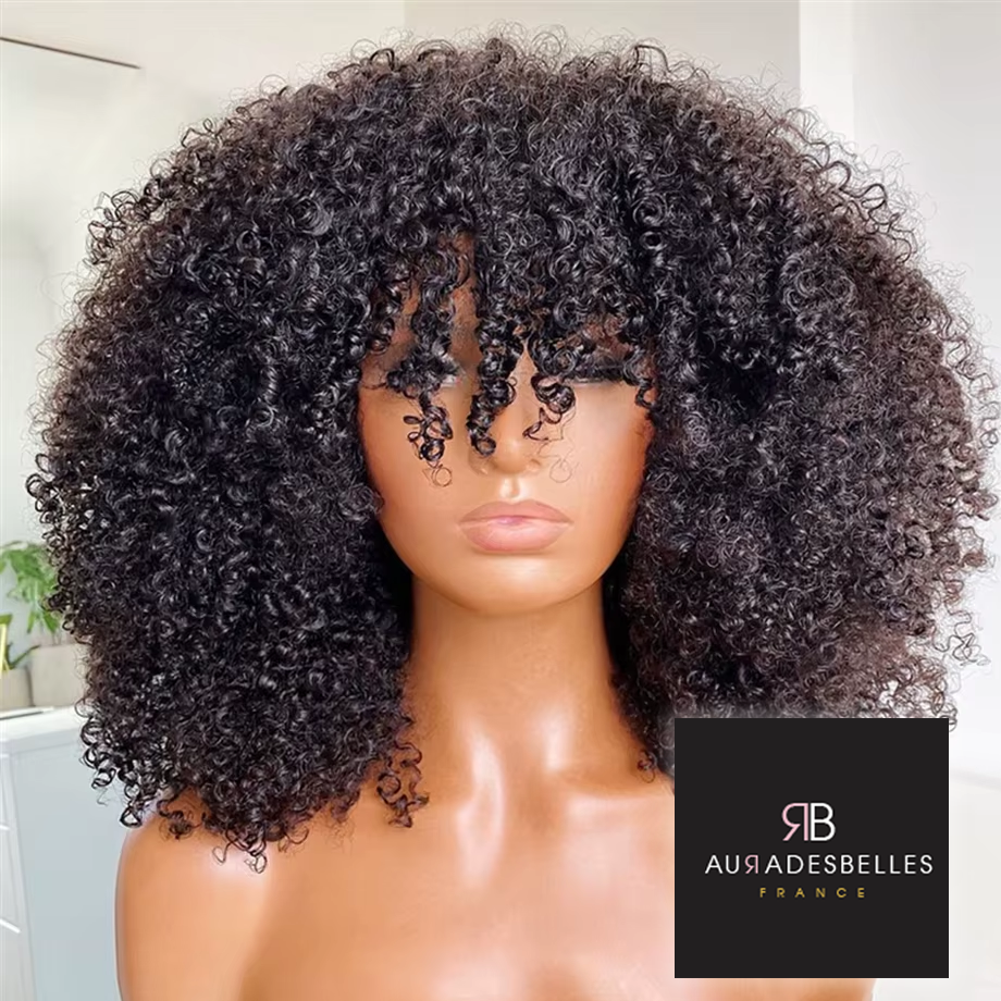 Offrez-vous une chevelure luxueuse et naturelle avec la perruque bouclée noire Jasmine en cheveux premium afro-kinky, facile à coiffer.