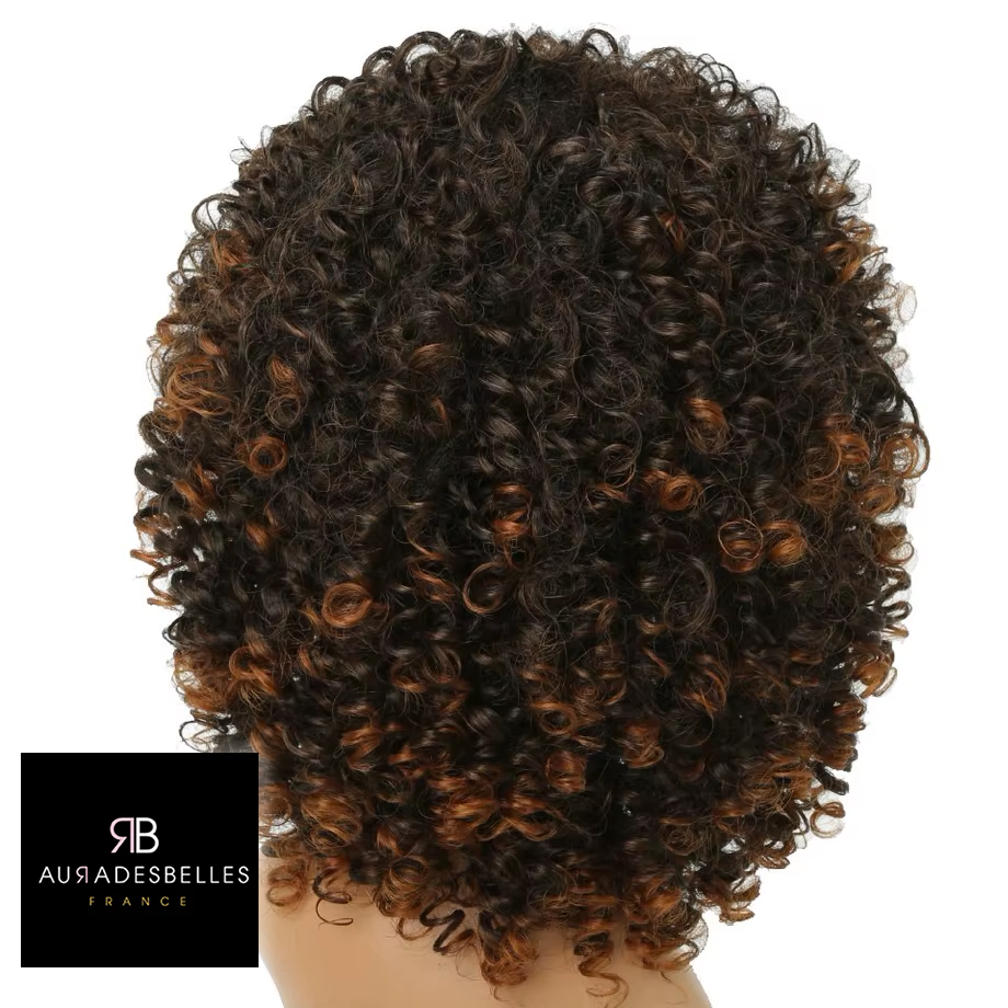 Perruque curly marron : Boucles rebondissantes et résistance à la chaleur
